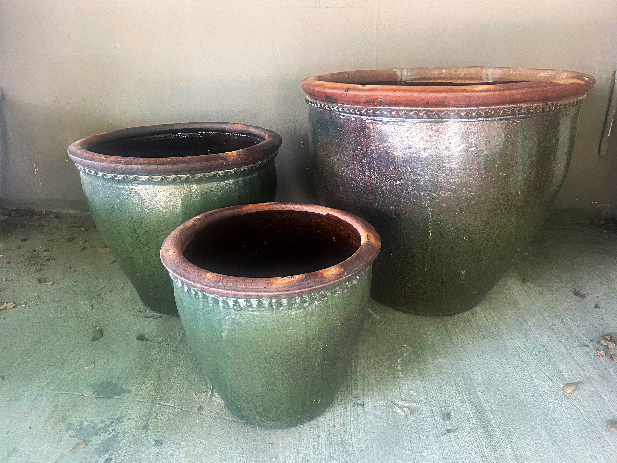 Rustic Ceramic Cup Planters with Bordered Chain Detail / 25GW8932