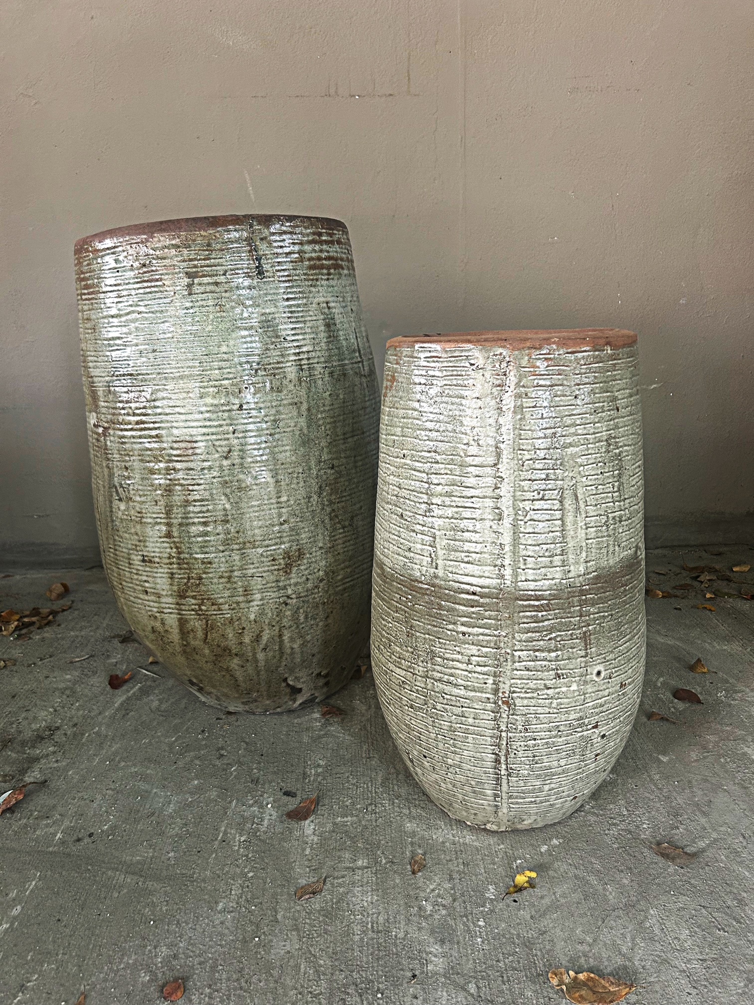 Rustic Ceramic “Weeble” Planters with Variegated White Finish / 25GW9328