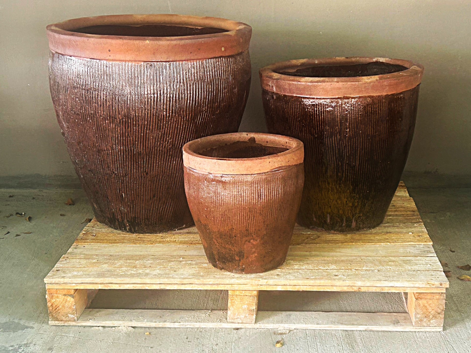Rustic Ceramic Planters with Corrugated Texture / 25GW9301