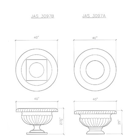 Londonderry Urn with square base: JAS 3097B 40″W x 27 1/2″H